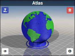 - Иконка с экструдером – Кликните сюда, чтобы начать печать. Если в это время уже ведется печать другого объекта, объект на изображении будет добавлен в очередь.