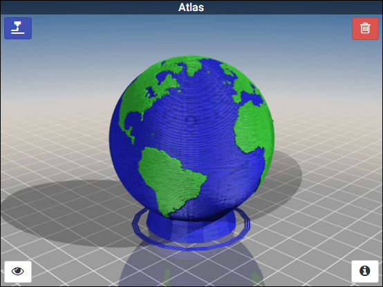Если вы запустили больше одного процесса печати, то в этом окне будет очередь. После того, как печать будет завершена, нажмите иконку с экструдером, чтобы запустить новую печать.