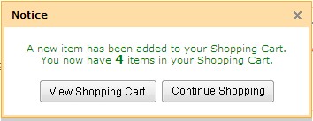3. После добавления товара, Вы можете нажать кнопку «View Shopping Cart» (Просмотреть товарную тележку) для размещения заказа или нажать кнопку «Continue Shopping» (Продолжить покупку) для продолжения добавления товаров в тележку.