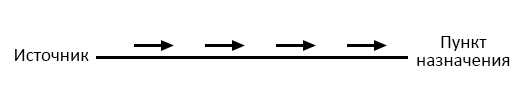Тонкая, сплошная линия (как на картинке выше) – общепринятый символ непрерывного провода. Поскольку провод обычно сделан из проводникового материала (вроде меди), его атомы имеют много свободных электронов , способных легко перемещаться по этому проводу. Однако внутри провода не возникнет непрерывного и равномерного потока электронов , пока у них не будет места, в которое можно будет войти, и места, из которого можно будет выйти. Давайте добавим на картинку гипотетические «Источник» (И) и «Пункт назначения» (ПН) электронов .