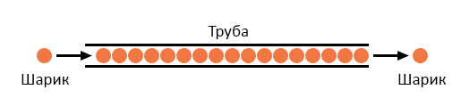 Труба полна шариков, как и проводник полон свободных электронов , готовых к тому, чтобы начать движение под влиянием внешней силы. Если слева в эту трубу внезапно вставить один шарик, справа тут же вылезет другой. Но хотя каждый шарик преодолел очень маленькое расстояние, передача движения из одного края в другой происходит практически мгновенно, какой бы длины ни была эта труба. В электричестве это перемещение от одного края проводника до другого происходит со скоростью света – 299792 километров в секунду! Каждый отдельный электрон , впрочем, по отдельности перемещается по проводнику с гораздо меньшей скоростью.